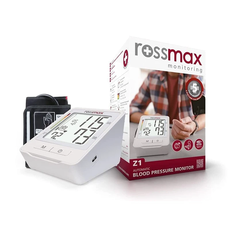 فشارسنج مدل Z1 رزمکس دارای نشانگر بالا بودن ریسک فشارخون است که برای افرادی که در معرض این بیماری هستند، حائز اهمیت است. در صورت داشتن آریتمی، این مدل از فشارسنج میتواند شما را باخبر سازد و به شما هشدار آریتمی دهد. مدل Z1 دارای 90 عدد حافظه است. این دستگاه دارای پورت Type-C بوده و میتوان آن را با هر شارژری و یک کابل USB-C شارژ کرد. با تکنولوژی Real‐Fuzzy لازم نیست که کاربران قبل از اندازەگیری، میزان باد شدن کاف را خودشان کنترل کنند. این فناوری همچنین از بروز نتایج اشتباه که ممکن است ناشی از ناصاف بودن سطح کاف باشد، جلوگیری میکند و باعث میشود که بیمار در حین اندازەگیری در ناحیه بازو احساس ناراحتی نکند. از دیگر ویژگیهای این مدل از فشارسنج رزمکس میتوان به نشانگر ریسک فشارخون بالا، نشانگر ضربان نامنظم قلب و تشخیص حرکت فرد در حین اندازهگیری اشاره کرد.
